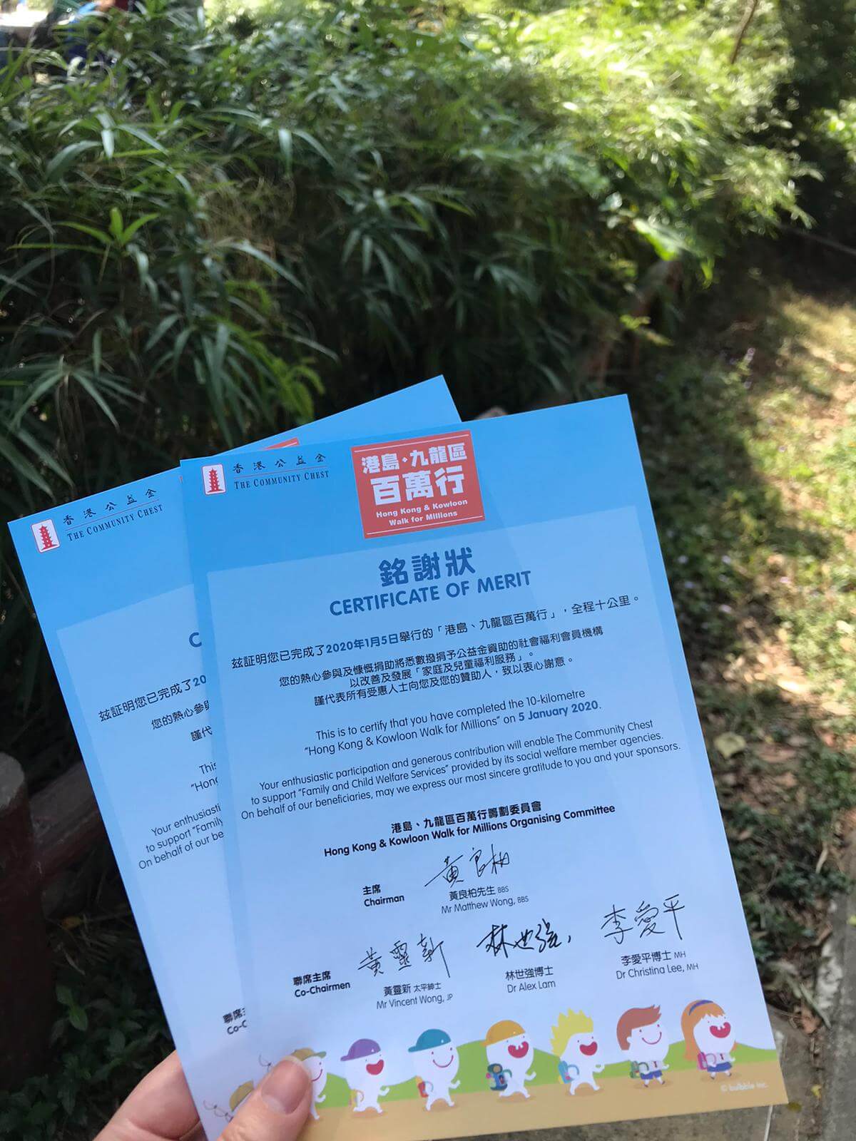 本總商會 於1月5日參加 港島、九龍區公益金百萬行。 當日大隊由起點香港大球場出發,經黃泥涌峽道、布力徑、香港仔水塘道到達終點香港仔郊野公園遊客中心,全程長約十公里。